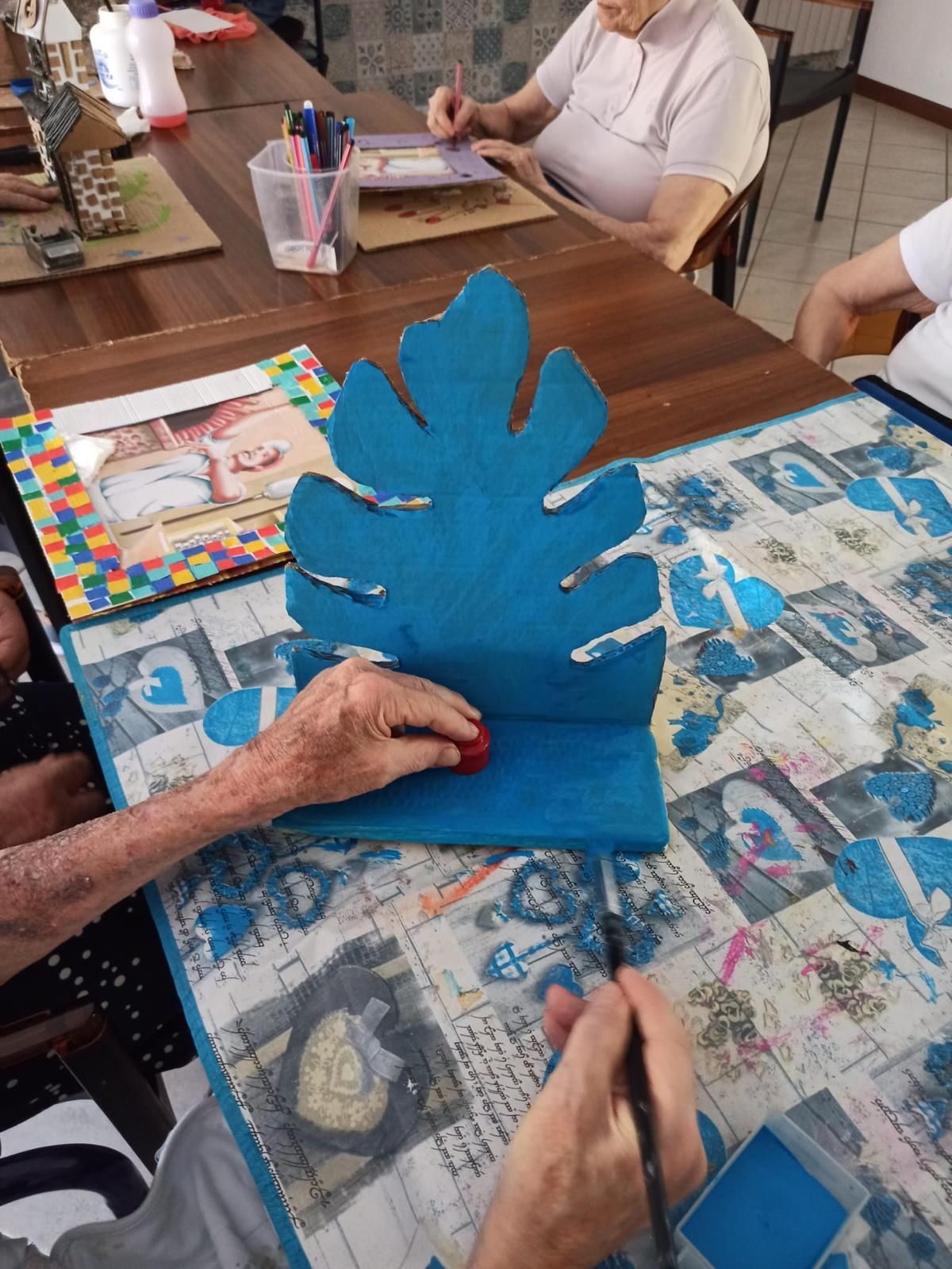 I pomeriggi sono organizzati in collaborazione con professionisti esterni per laboratori di ARTETERAPIA che implica l’uso di attività artistiche e creative per aiutare gli individui rispetto a una determinata disabilità, a riabilitarsi o a migliorare la qualità della propria vita (Bernie Warren, 1995).
