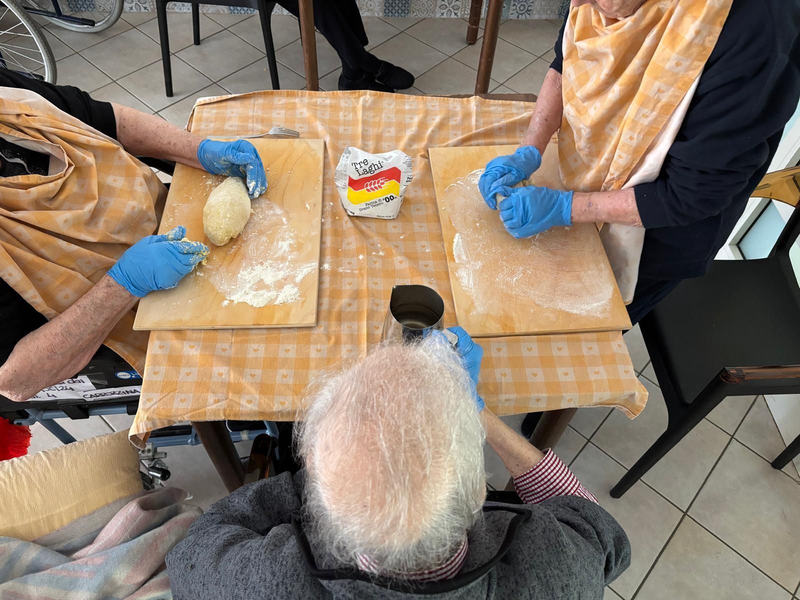 Tutte le mattine l'Animatrice della struttura alterna attività intellettive, motorie, manuali con la " Scuola di Cucina" a cui partecipano attivamente tutti gli Ospiti, ognuno con le proprie potenzialità.